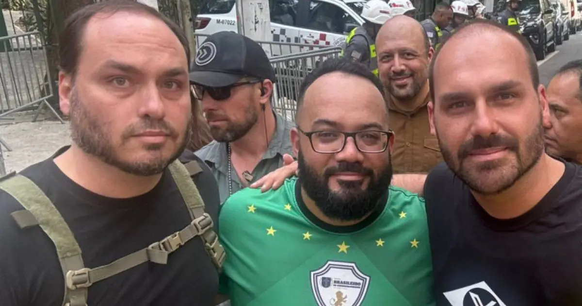 Presente na caminhada pela liberdade, liderada pelo deputado federal Nikolas Ferreira (PL-MG), Carlos Bolsonaro, pré-candidato ao Senado em Santa Catarina, foi o último a seguir Leandro de Jesus. Os dois foram fotografados na caminhada juntos.